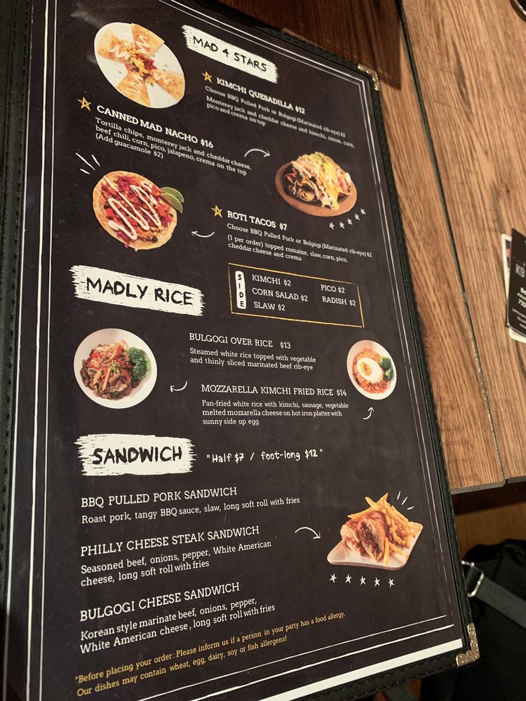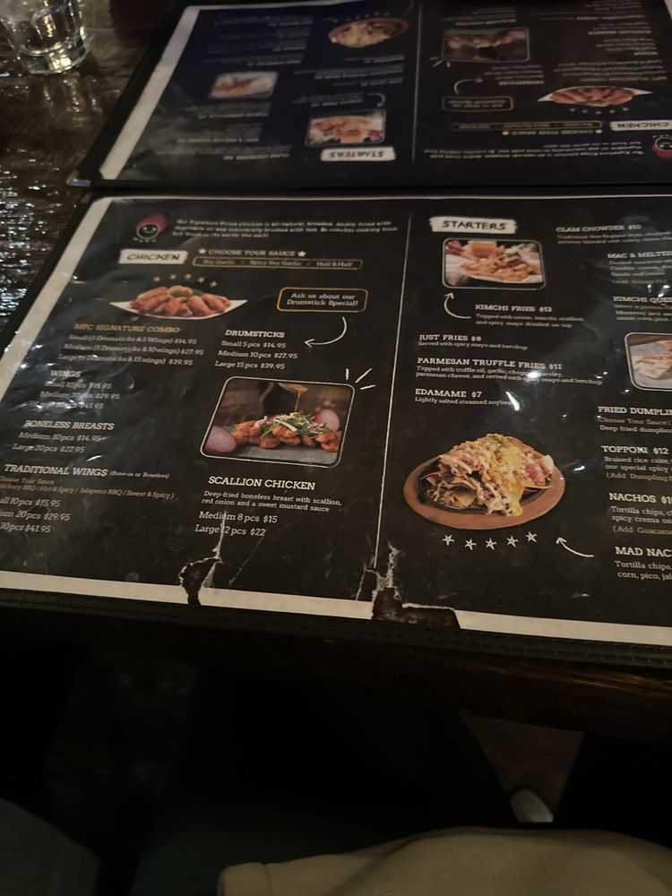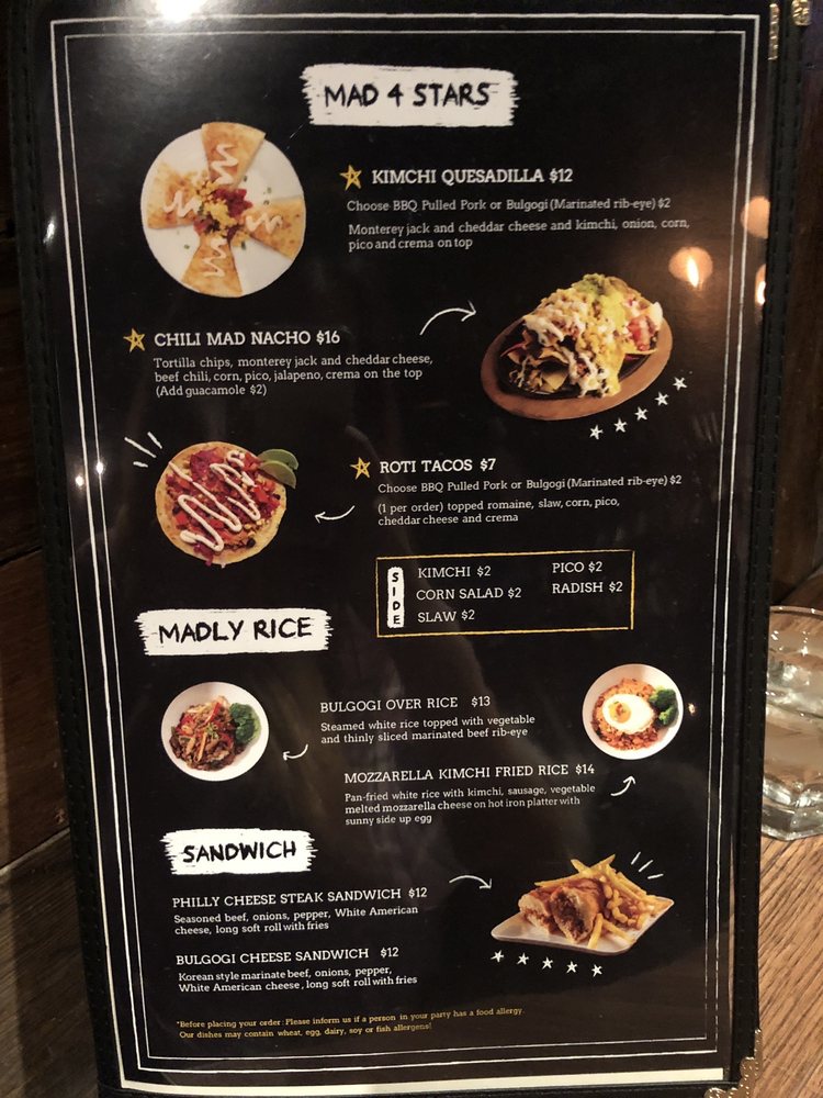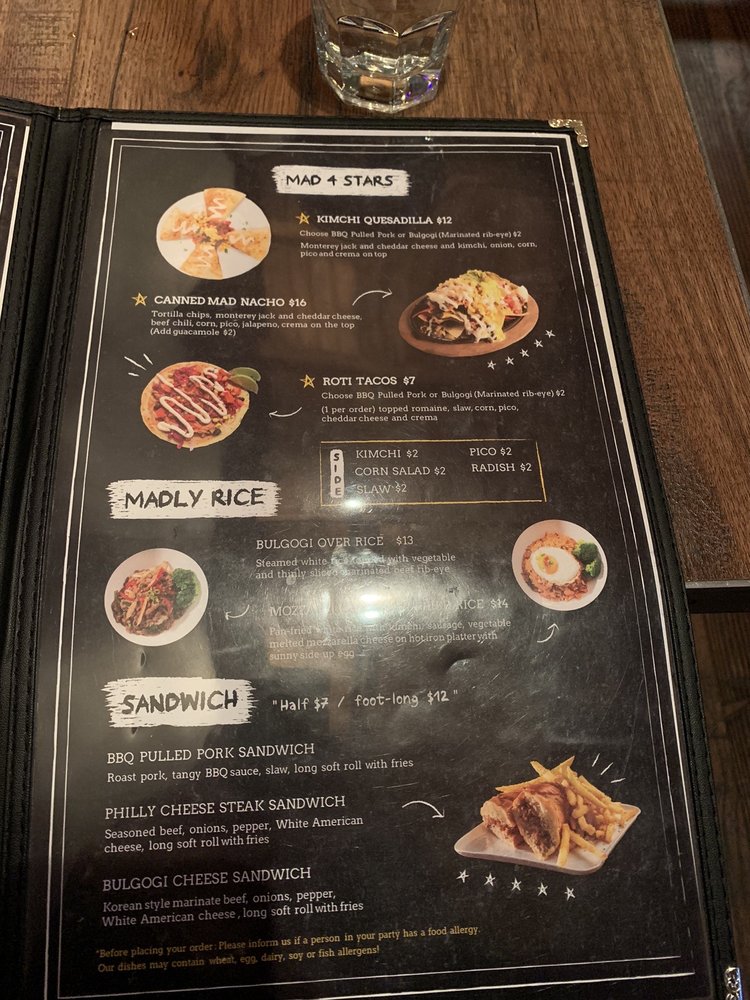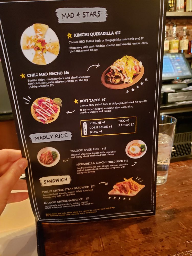 Mad For Chicken, located in Brooklyn, NY, is a Korean gastropub specializing in mouthwatering chicken wings. The signature wings are fried to perfection, offering a delightful crunch with hand-brushed sauces like Soy Garlic and Spicy Soy Garlic. The menu also features appetizers like Just Fries and Mac & Melted Cheese, as well as Mad for Specials such as the Crispy Chicken Bowl and Bulgogi Bowl. Customers rave about the flavorful chicken dishes, praising the crispy breading and juicy meat. The restaurant is known for its hipster and trendy atmosphere, with options for vegetarians and a diverse range of payment methods, including cryptocurrency. With a variety of seating options and excellent service, Mad For Chicken is a must-visit for those craving authentic Korean fried chicken.
