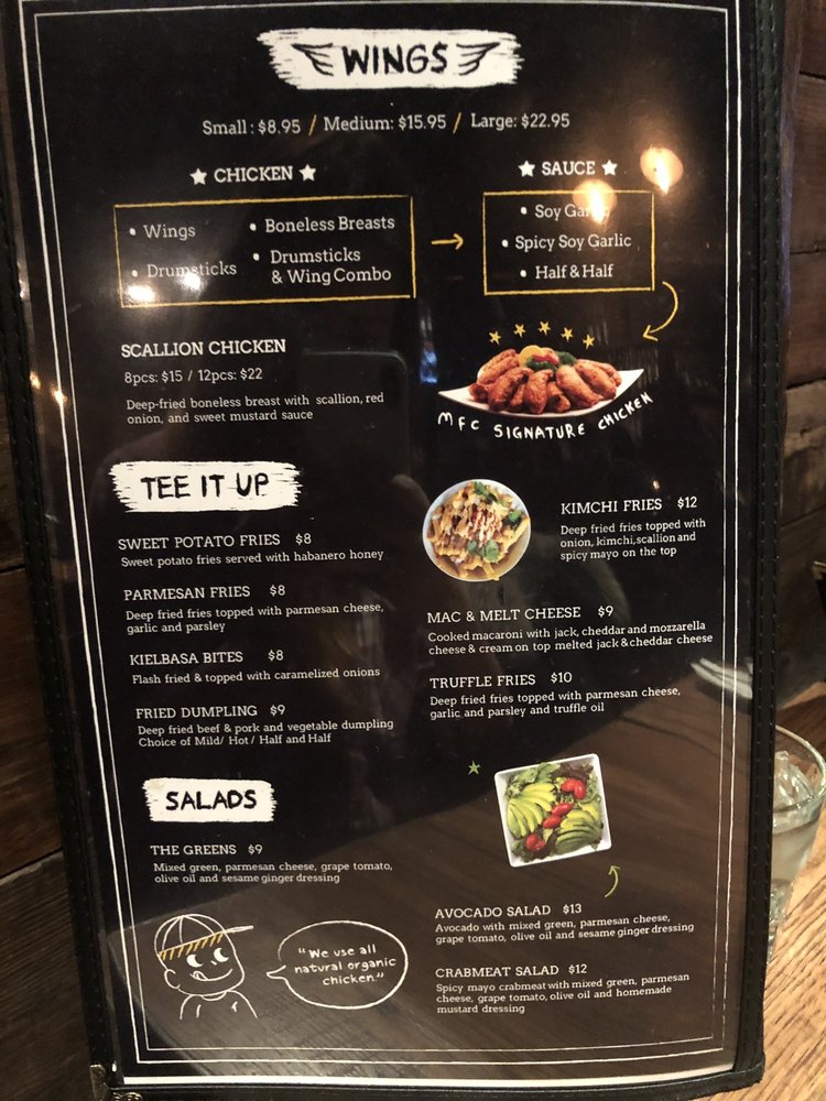 Our signature chicken is fried with our special techniquegiving it an amazing crunch. Our sauces are always brushed onby hand.Soy Garlic & Spicy Soy Garlic cannot be on the side.